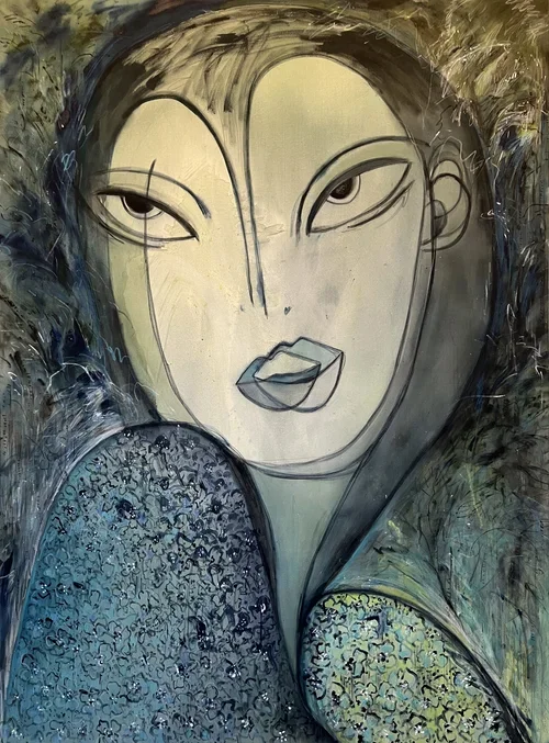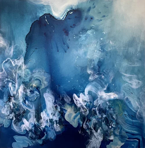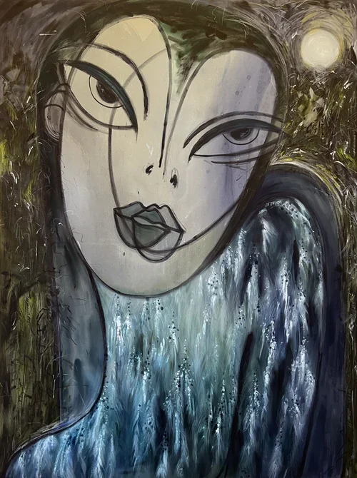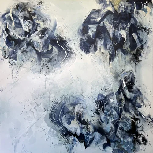 Acrylic, spray paint, pastel, oil stick, airbrush on canvas