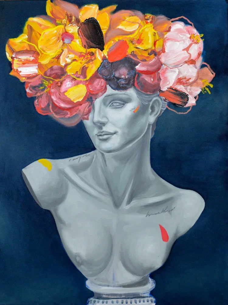 Acrylic, pastel, spray paint, pastel, airbrush, pencil