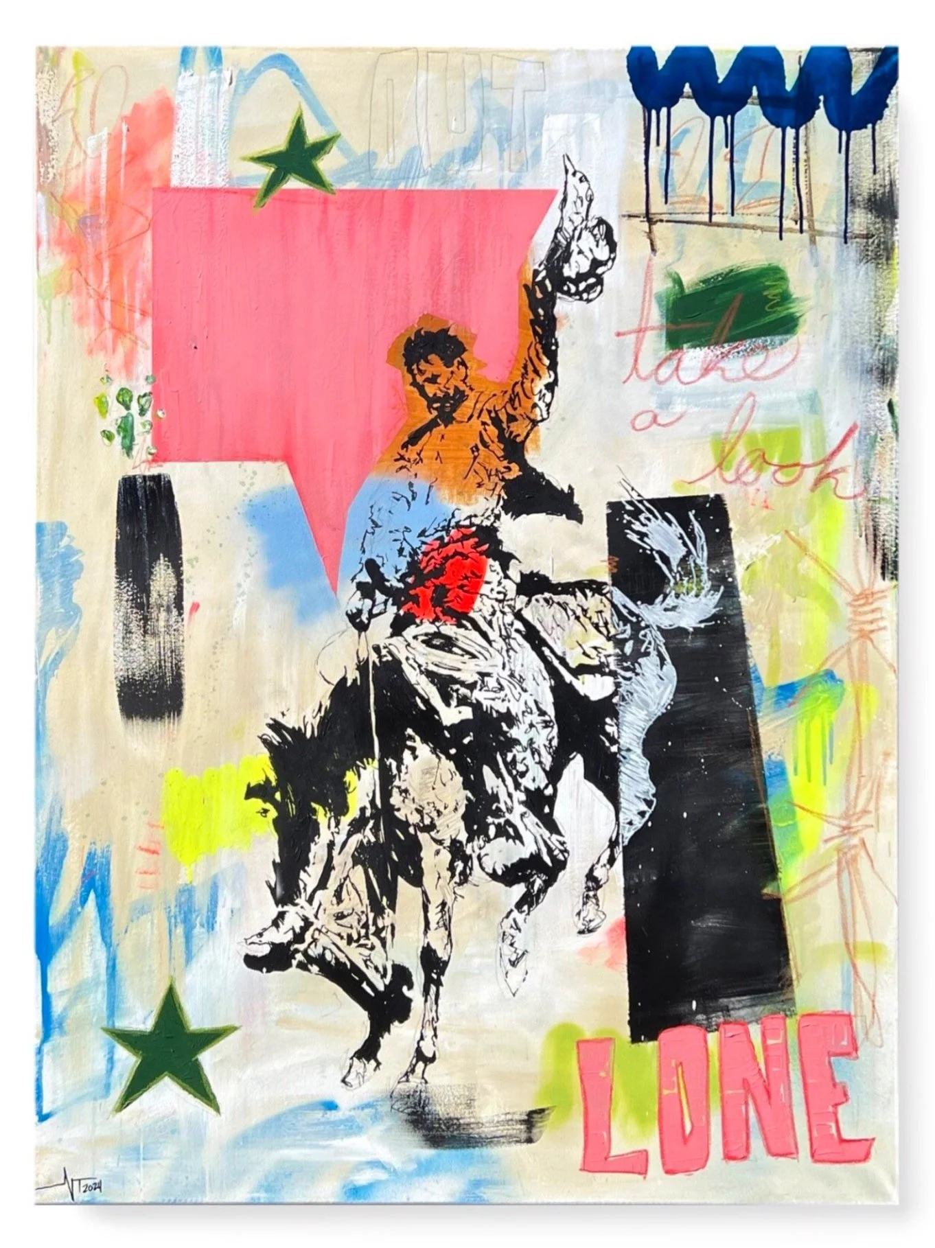 The Wild West is a bold and expressive pop art exhibition by Toronto-based artist Aidan Thomson. Through layered imagery, vivid color, and a personal symbolic language, Thomson invites viewers into a world that is both autobiographical and open to interpretation.
